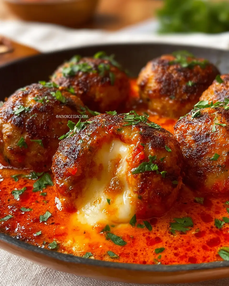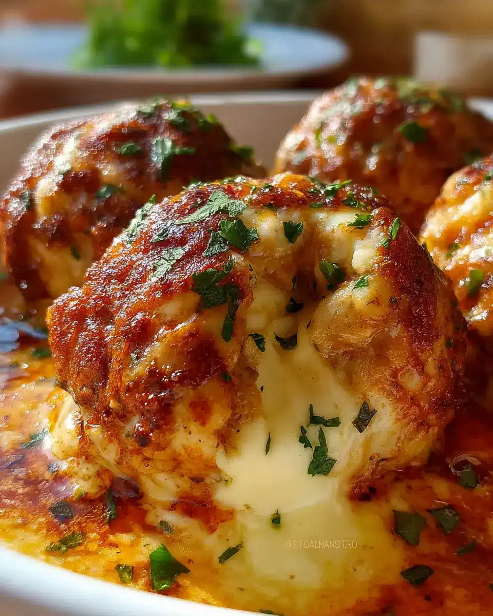 Las albóndigas rellenas de queso son mucho más que un simple platillo; son un abrazo en forma de comida. Imagina entrar a casa después de un largo día, y el aroma cálido y delicioso de estas albóndigas recién horneadas se mezcla con el sonido de risas familiares. Esto es exactamente lo que estas albóndigas hacen: crean recuerdos.