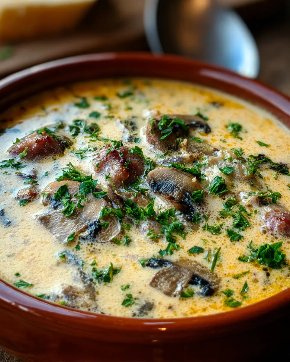 Sopa Cremosa con Salchicha Italiana y Champiñones Reconfortante