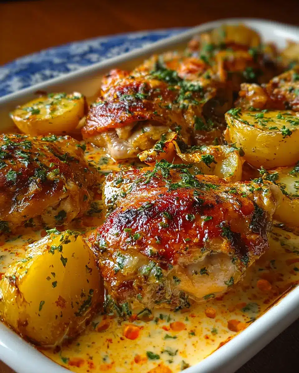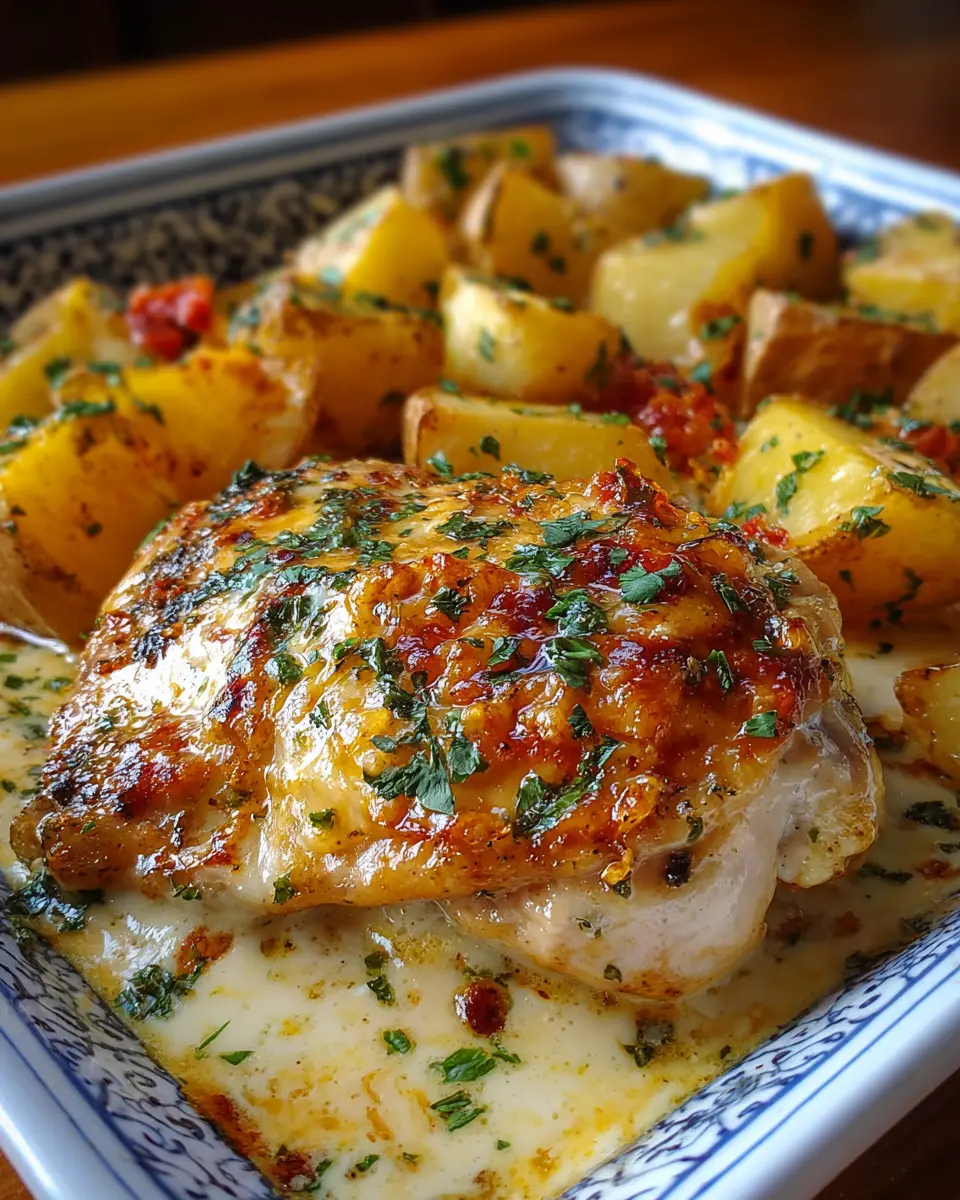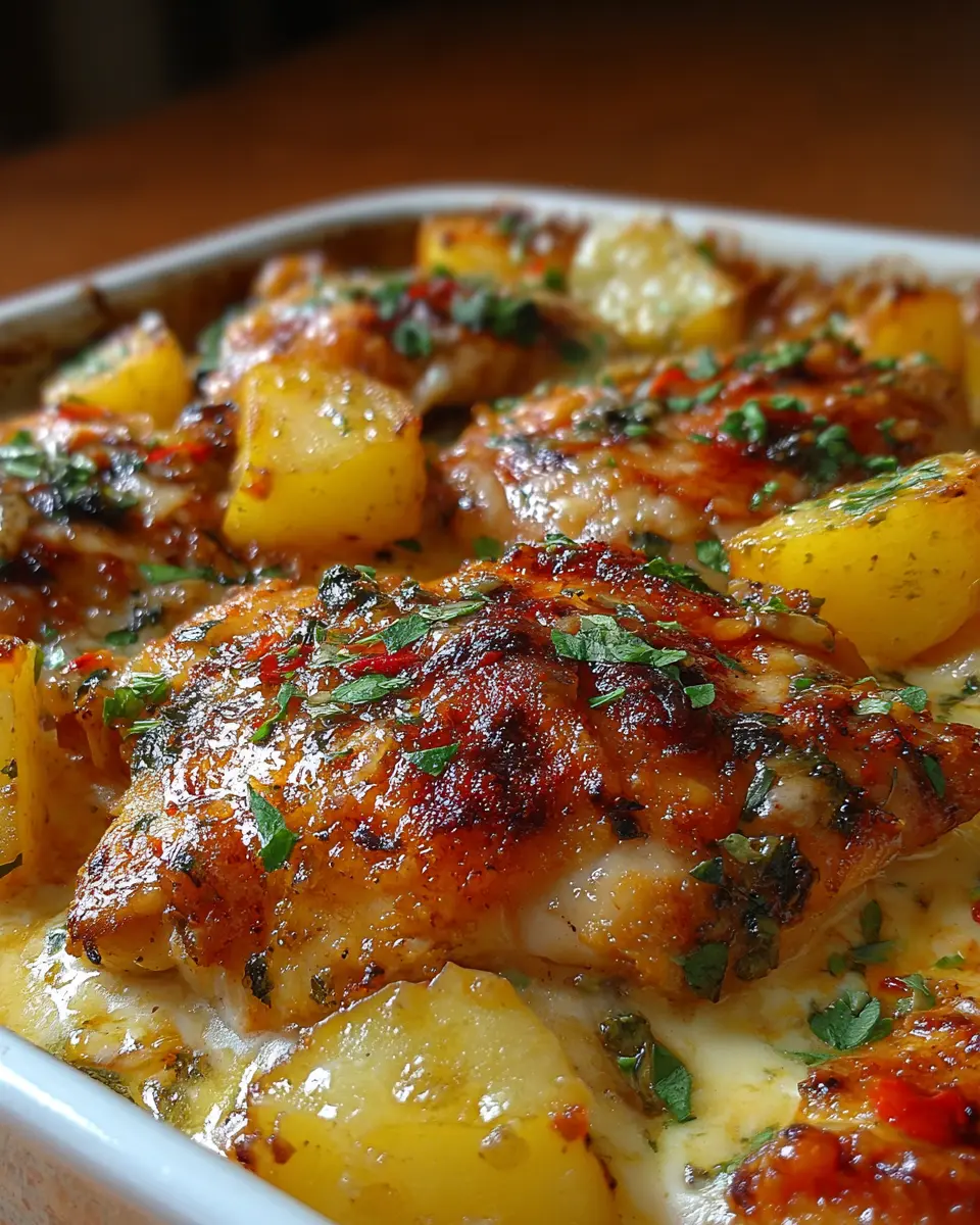 Pollo con patatas: Receta deliciosa en salsa de queso al horno